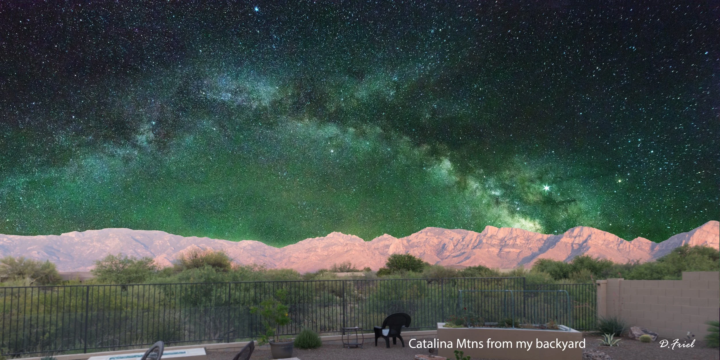 This is a panoramic of several shots of the Milky Way and my backyard facing the Catalina mountains. BACK