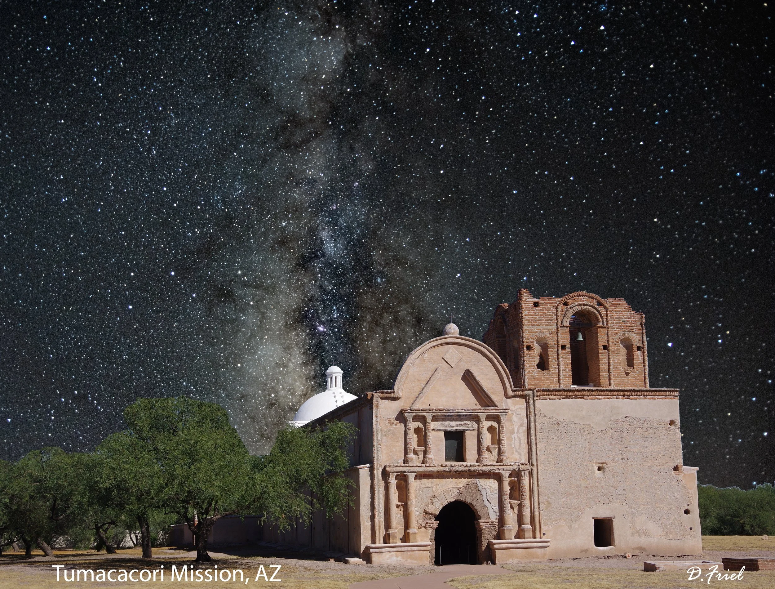 This is a blended picture of a Milky Way shot and a daytime shot at the Tumacacori mission, AZ.